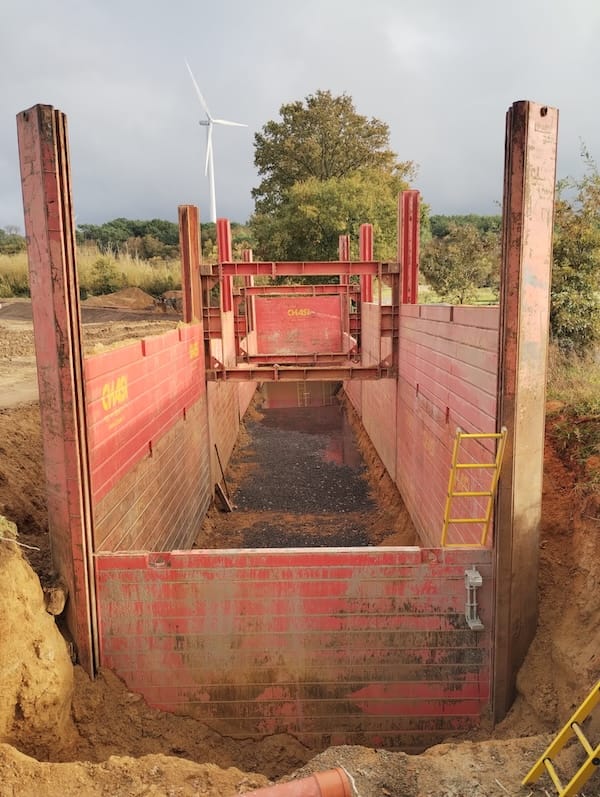 Nos blindages coulissants à double glissière offrent une robustesse et sécurité pour vos chantiers les plus exigeants. Leur système à double glissière assure une polyvalence remarquable, ce qui leur permet de s’adapter à diverses configurations de terrain, que ce soit pour des tranchées ou des fouilles. Conçus pour les grandes profondeurs et largeurs, ils permettent de dégager un maximum d’espace de travail et assurent ainsi une progression fluide de vos travaux, même dans des terrains instables ou complexes.