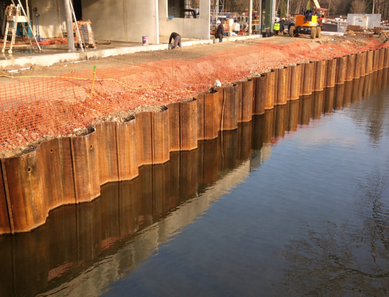 Les palplanches sont fabriquées à chaud, ce qui leur confère une excellente résistance mécanique. Elles présentent des épaisseurs de 7 à 22 mm et des modules de résistance élevés, de 700 à plus de 3 000 cm3/ml. Leur mise en place se fait par battage à l’aide d’un marteau, d’un vibreur ou d’un système hydraulique.