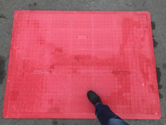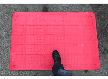 [Descriptif détaillé >] Passerelle piéton en plastique renforcé de fibre de verre. Permet à des véhicules jusqu’à 3,5 to de passer sur une tranchée allant jusqu’à 0,90 m de large et des charges de 400 kg sur 1,20 m de largeur. Antidérapant renforcé et bande de caoutchouc anti glissement de 8 cm tout autour de la plaque.